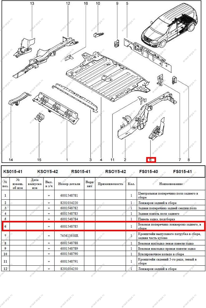 —Поперечина боковая лонжерона LADA Largus/Лада Ларгус заднего левая Renault 6001548785