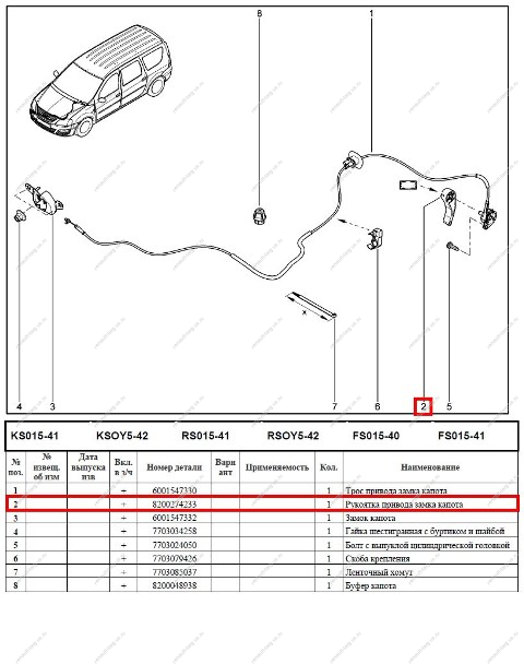Ручка открывания капота LADA Largus/RENAULT Logan 04-13/ XRAY FRANCECAR