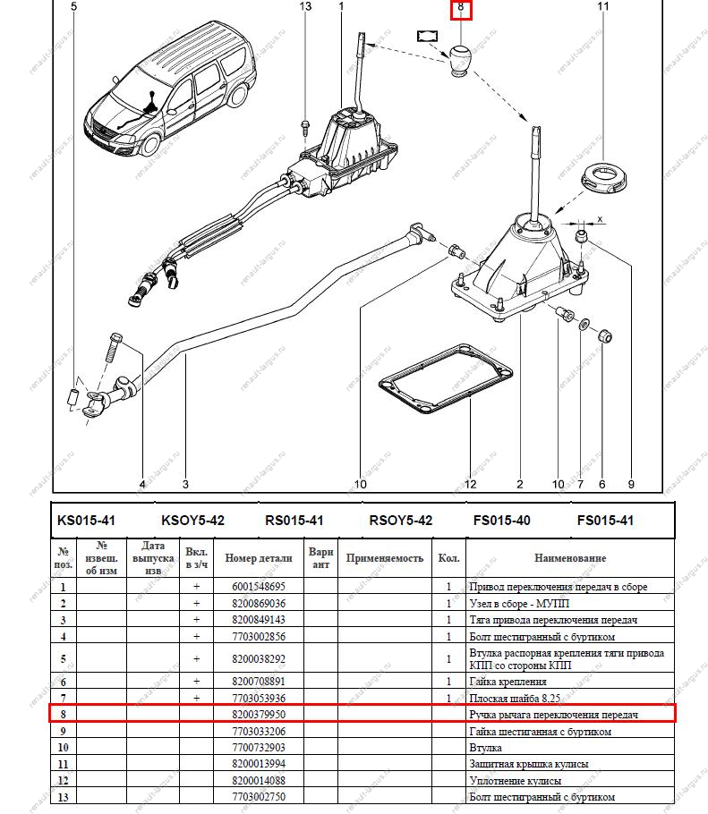 —Ручка рычага переключения передач LADA Largus/Лада Ларгус/ XRAY Renault 8200379950